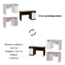Исполнение стола универсальное, то есть тумба может располагаться, как с левой, так и с правой стороны.
