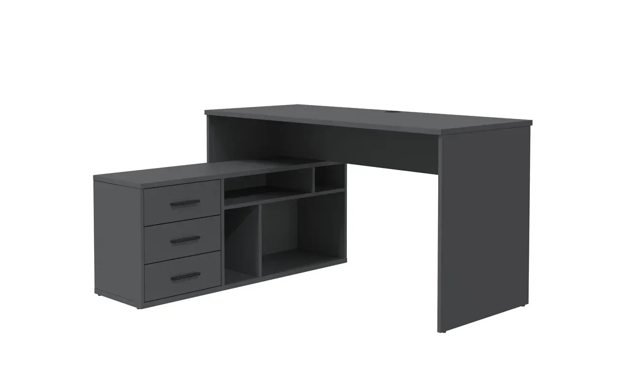 - 3 ящика для хранения- шариковые направляющие полного выдвижения- усиленная столешница, 22 мм- пропуск для кабеля- цвет: антрацит; белый- расположение угла: левый либо правый